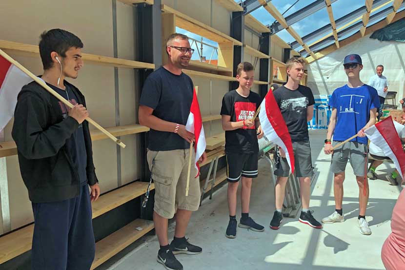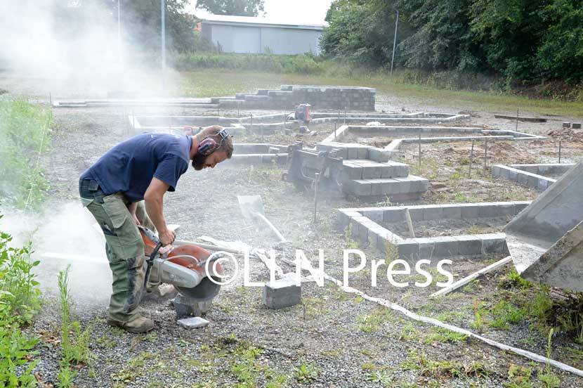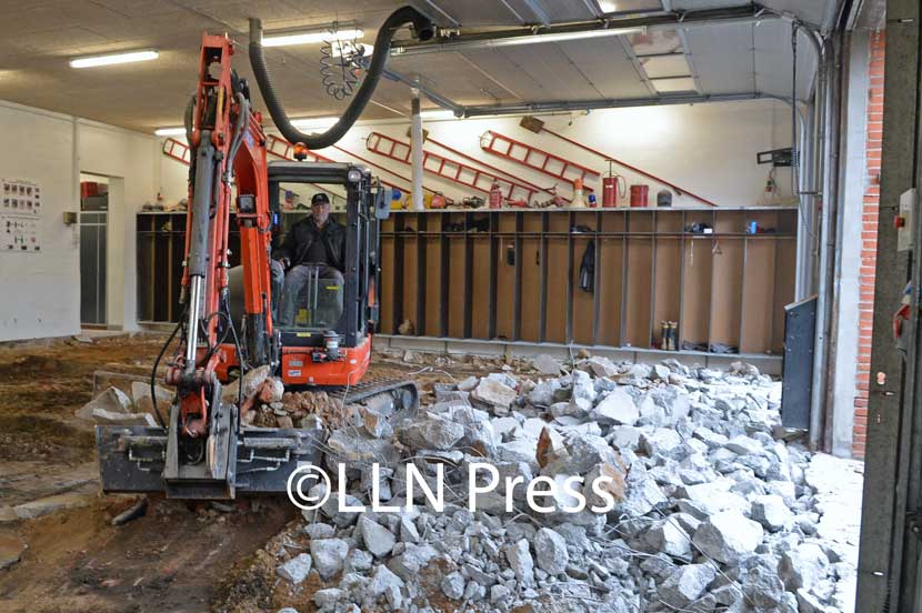 De blev sat i arbejde, da den gamle grundsten fra Enghaven skulle ud - de professionelle havde dog gjort arbejdet lettere ved at gøre klar omkring stenene.
