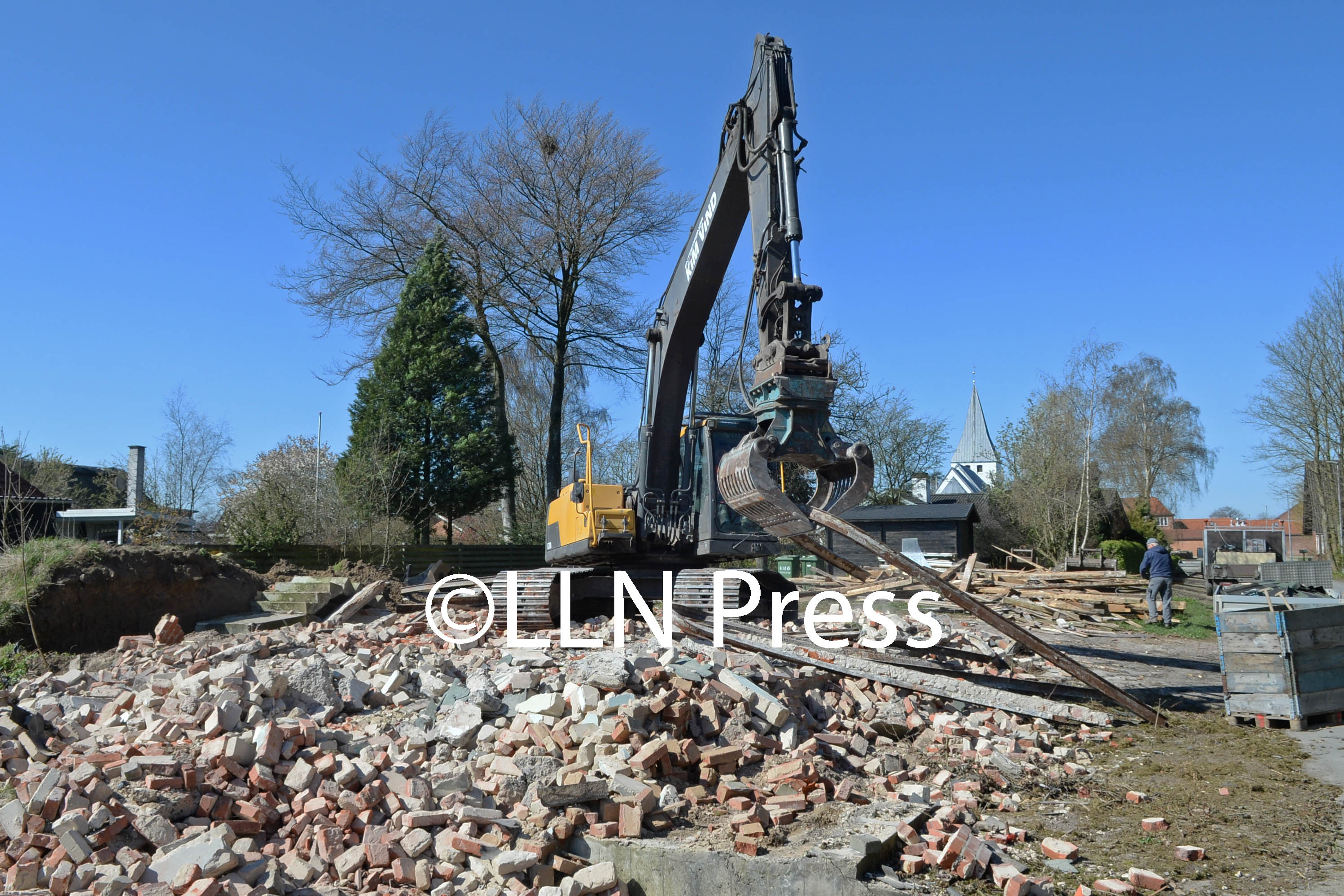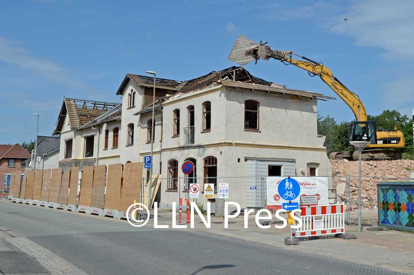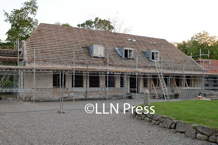 Nu brækkes det gamle alderdomshjem ned, men nogle af tagstenene genbruges i det nye byggeri.