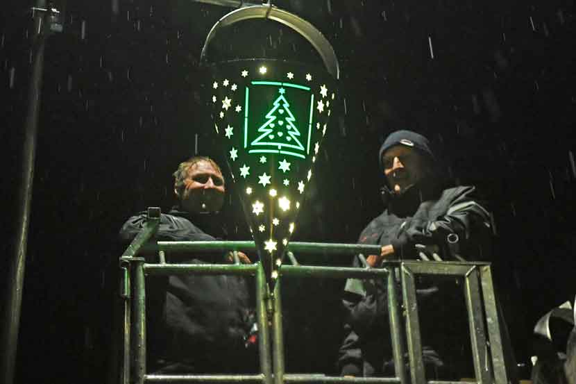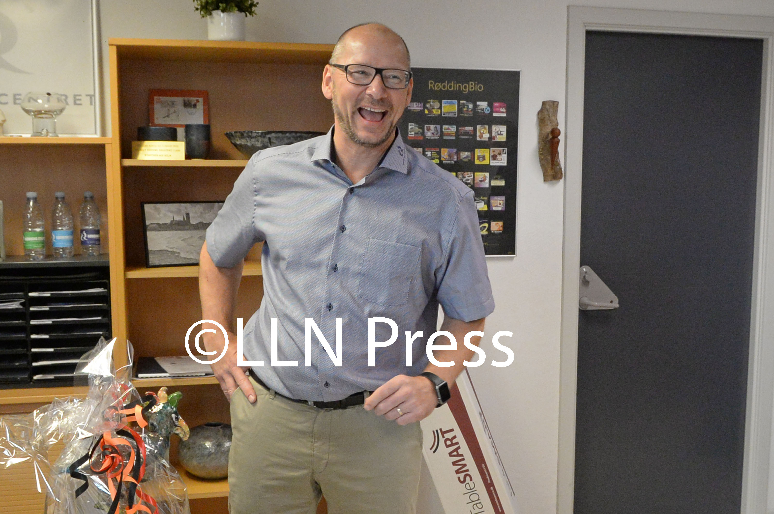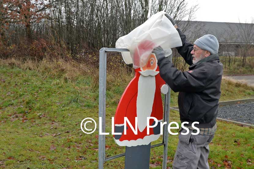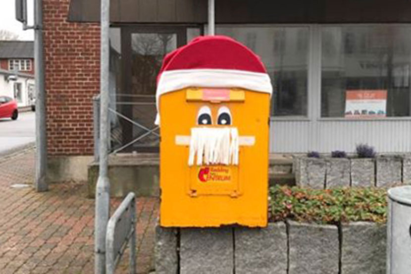 Siden julen i fjor har julemanden i Rødding skiftet adresse. Hans gamle bopæl på Enghaven er ved at blive brækket ned, og han var åbenbart ikke opmærksom på, hvor højt oppe han nu bor. Han har bosat sig hos Sydjysk Sparekasse, og her rækker en almindelig trappestige altså ikke. (læs videre under...