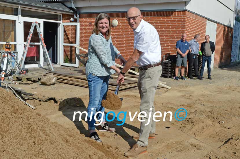 Det hele skete som et symbol på det nye 95 millioner kroner dyre projekt på plejehjemmet Enghaven i Rødding, hvor beboere og medarbejdere var inviteret med.