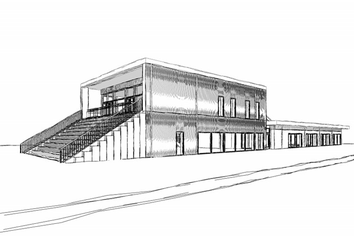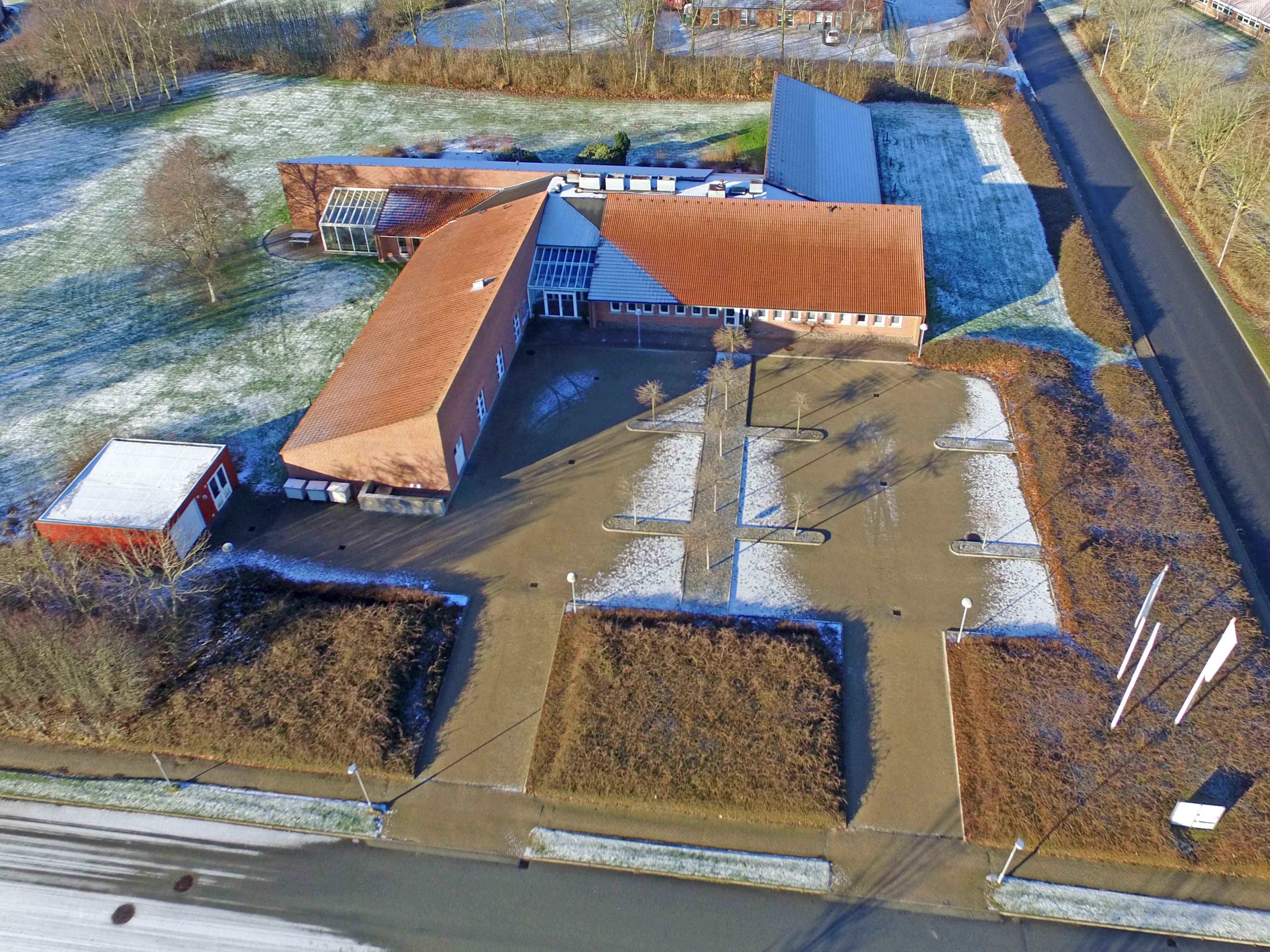 Den nye bygning bliver en harmonisk rød teglstensbygning, som passer godt ind i omgivelserne centralt i Rødding