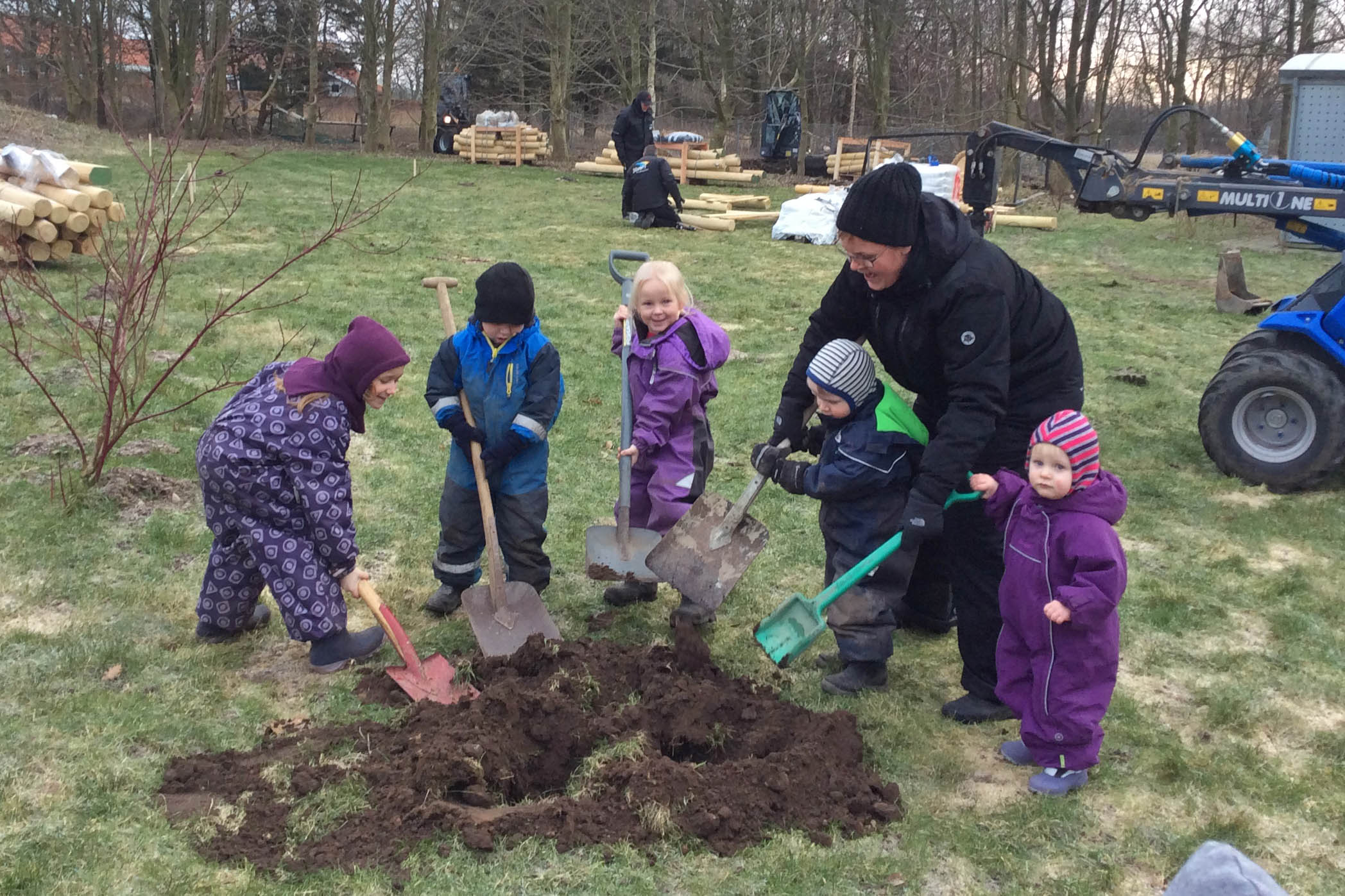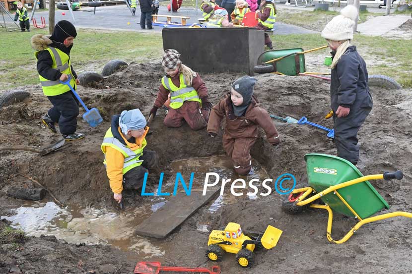 Så går projekt »ny legeplads« endelig i gang hos Galaksen på Rytterdam i Rødding. Det første spadestik er taget, og det var et barn fra hver gruppe, måner, stjernedrys, stjerner, stjerneskud og sole, som tog det første spadestik, mens de andre børn og voksne kiggede på. Dagen blev derefter fejret...