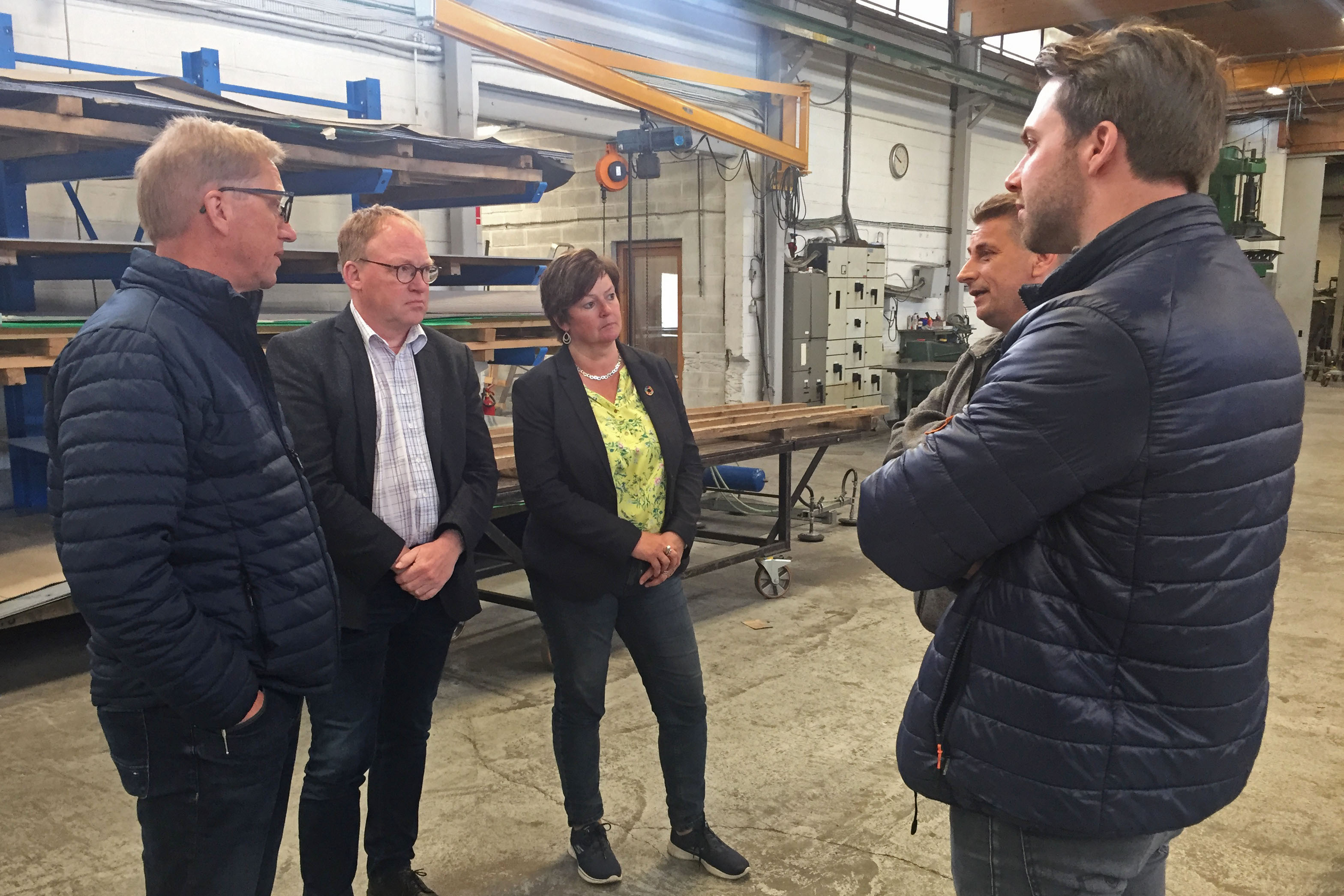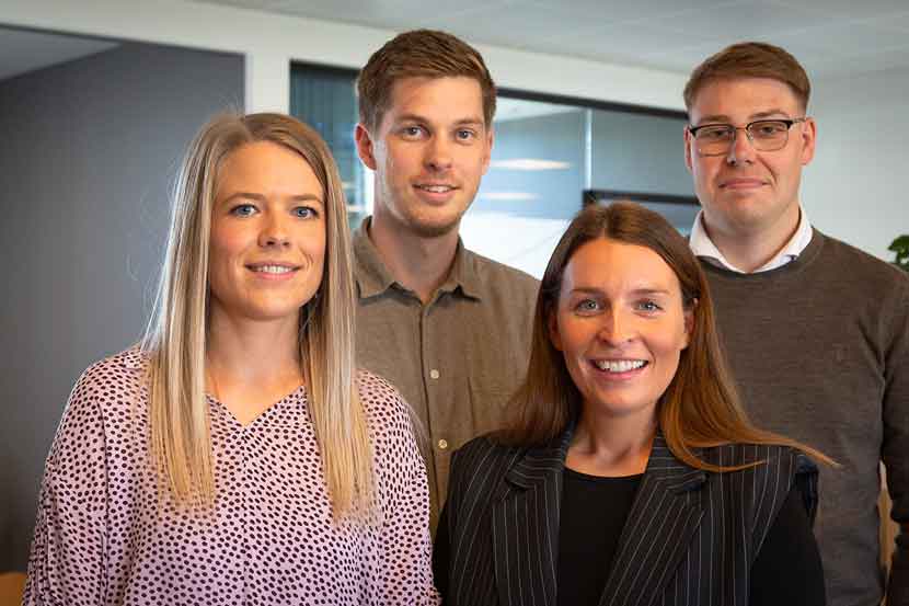 På billedet ses administrerende direktør Søren Leerskov Rasmussen Fra Bo Michelsen A/S, Martin Steen Nielsen fra Kuben Management, Udvalgsformand for Social og Ældre Bodil Staal (A) og borgmester Frank Schmidt-Hansen (C).
