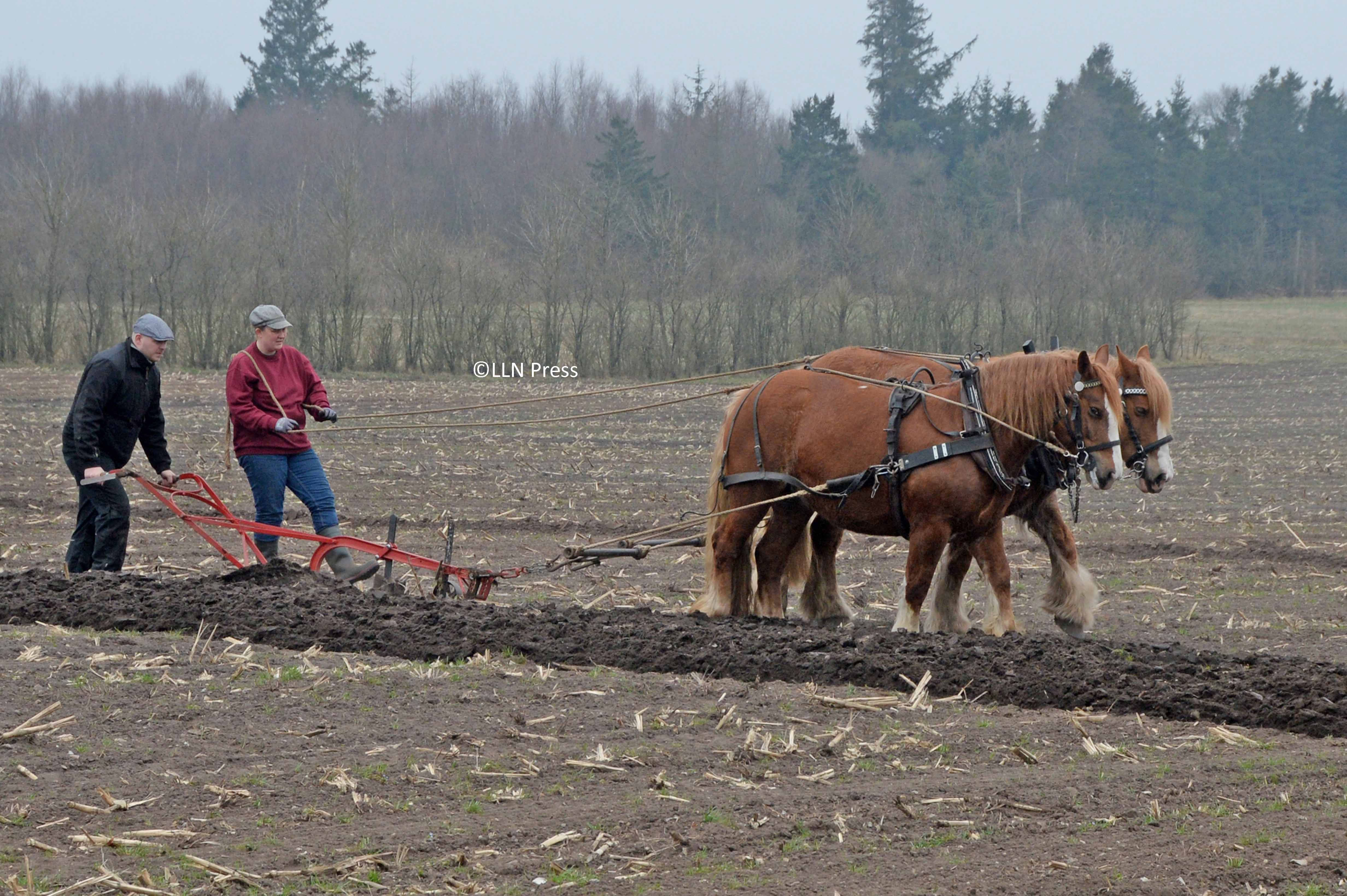 Martin Thomsen styrer ploven med ledsagelse af Gitte Kragelund, Hjerting, der ejer den ene af hestene. Den anden tilhører Sabrina Bøgh, Gesten. (Foto: LLN Press) Gitte Kragelund, Hjerting, Sabrina Bøgh, Gesten, og Keld Nielsen, Kragelund, var nogle af aktørerne her fra området, da nogle marker på...