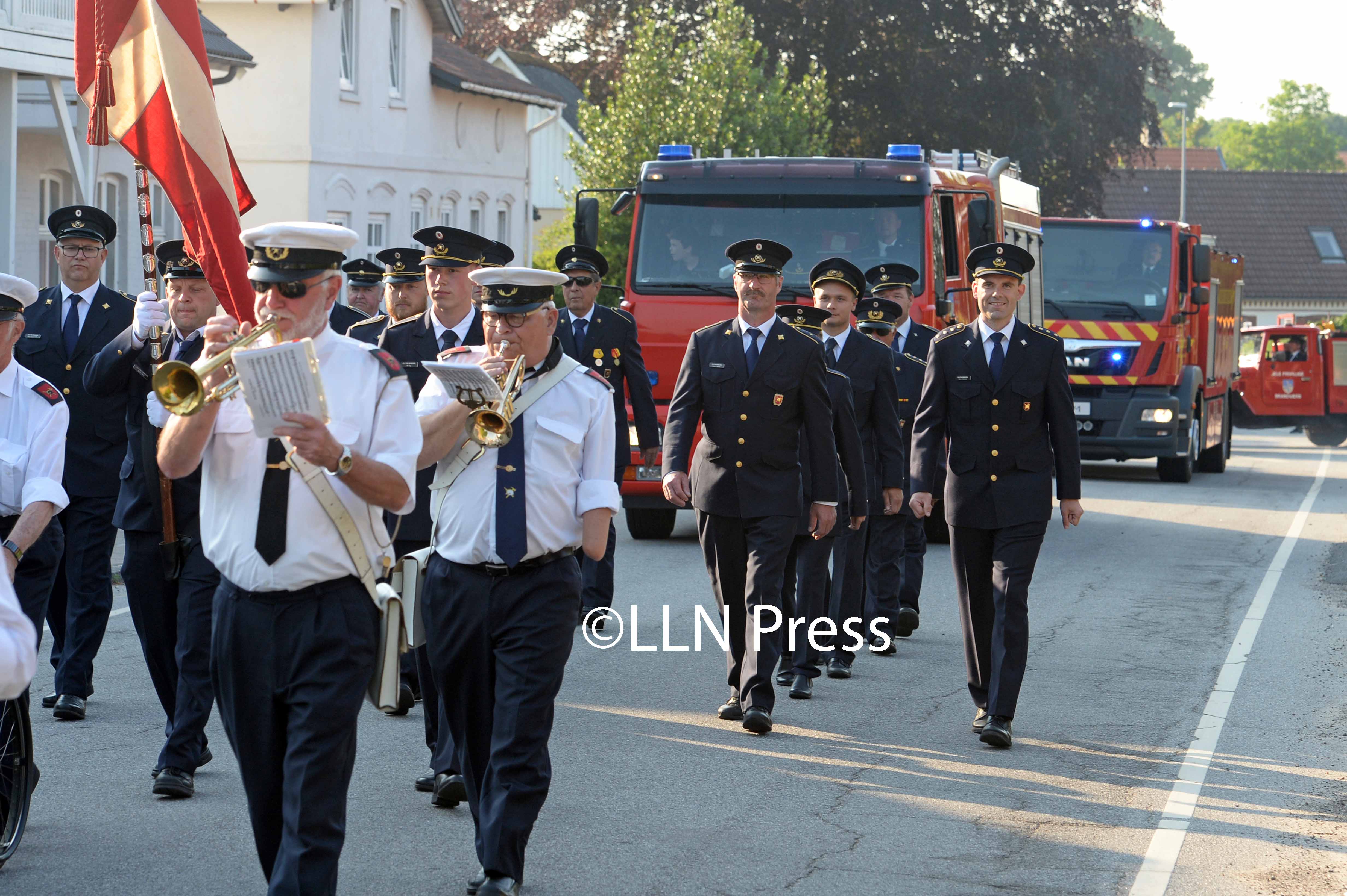 Brandfolkene i Jels frivillige Brandværn luftede mandag aften uniform og biler. Ført an af brandværnsorkestret fra Skodborg gik brandfolkene en tur rundt i byen efterfulgt af de brandkøretøjer, der den seneste tid har været i aktion flere gange - bl.a. til storbranden på Randbøl Hede/Frederikshåb...