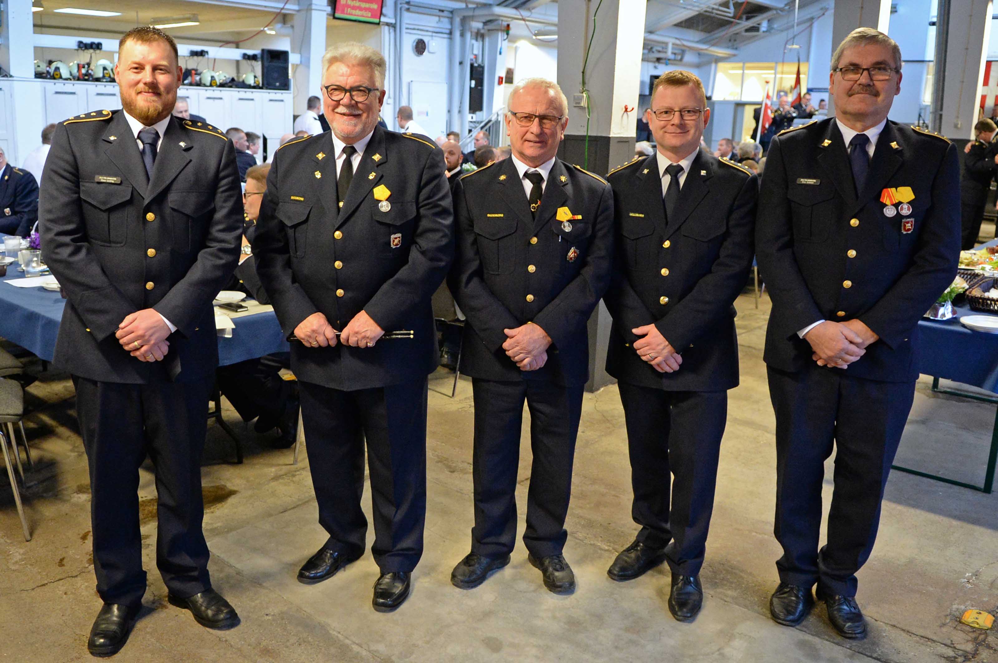 Ved lørdagens nytårskur i Trekantbrand på brandstationen i Fredericia var der lejlighed til at hædre en række jubilarer. Fra Vejen-området handlede det om medlemmer tilknyttet de frivillige brandværn i Skodborg, Jels og Rødding. Fem modtog hæder for deres indsats. Det er fra venstre Claus Lunding,...