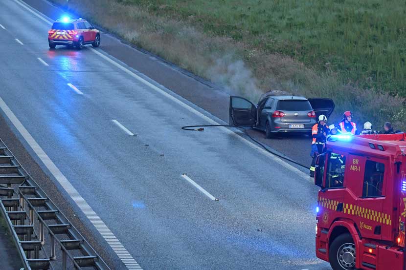 Klokken 21.55 lød meldingen på bilbrand på motorvejen.