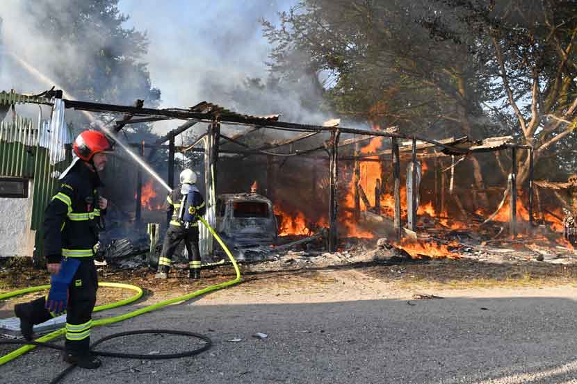 De kom til en overtændt garagebygning på Tværvej 8. En bygning, der var bygget sammen med stuehuset.