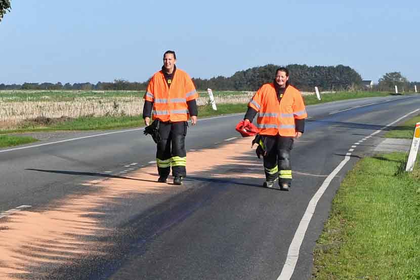 Her kunne brandfolkene konstatere, at der over en længere strækning var spildt hydraulikolie.