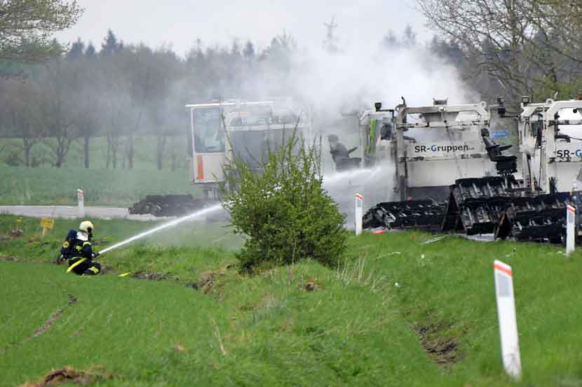 Det brændte ved siden af en gastank indeholdende 5000 liter gas på maskinen.