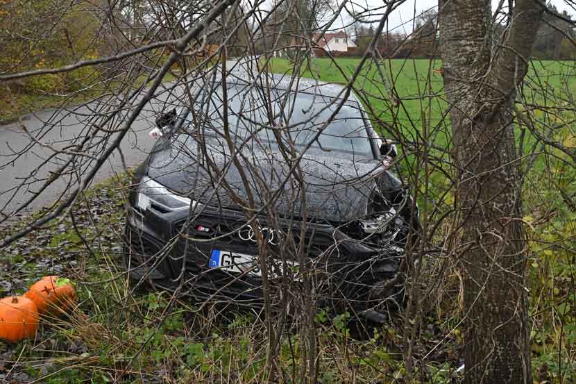 Det viser sig at være en tysk-registreret Audi, der har ramt træet.
