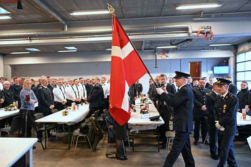 Bilerne var også kørt ud af brandgaragen, så der var plads til afviklingen af nytårsparolen med musik, taler og overrækkelse af forskellige tegn.