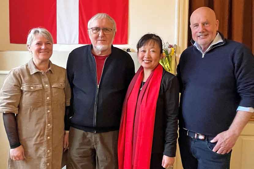 På billedet øverst er det Anita Hougaard Snor, der er menighedsrådsformand i Sdr.Hygum, og Jens Christian Andersen, der er formand for Lintrup/Hjerting Menighedsråd, sammen med Sara og Carsten Søgaard..