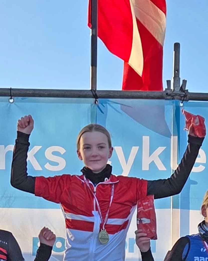 Det var 11-årige Maia Kristensen fra Vejen, der kørte fra de andre deltagere og vandt Danmarksmesterskabet i cykelcross i sin klasse, U13P, altså piger på 11-12 år.